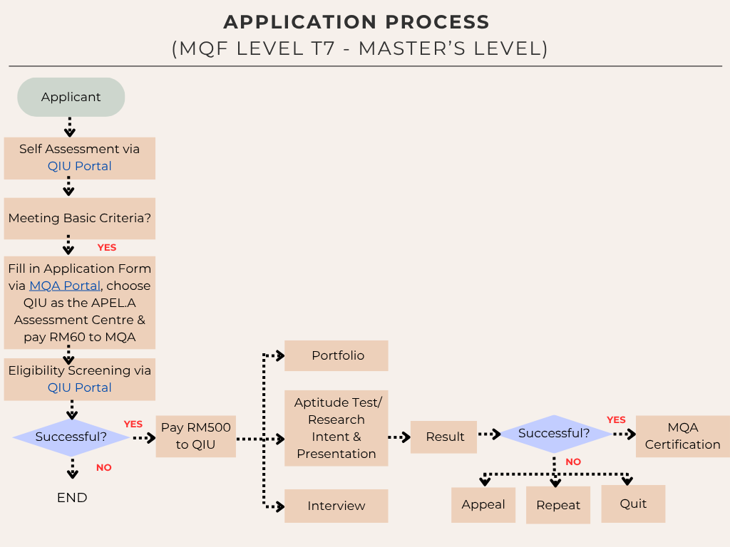 QIU APEL Centre is an assessment centre approved by the Malaysian Qualifications Agency (MQA) to conduct APEL.A assessments, offering access to programmes at MQF Level T7 (Master’s level).
