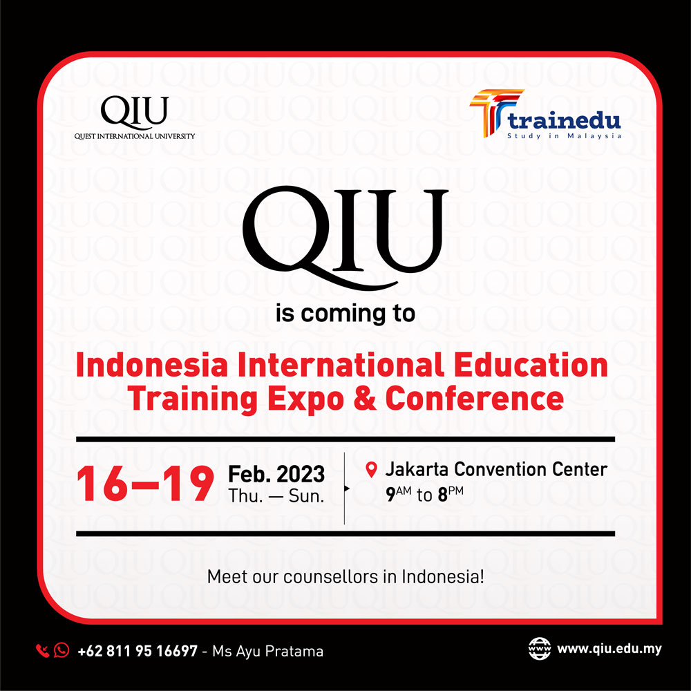 We are excited to announce that QIU will be exhibiting at the Indonesia International Education Training Expo & Conference from 16th to 19th February 2023 at the Jakarta Convention Center.