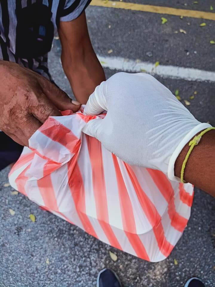 Supported by their friends, they go around areas ranging from Bercham, Tasek and Chemor to Simpang Pulai, handing out packets of cooked food and daily essentials to the people who need them the most.