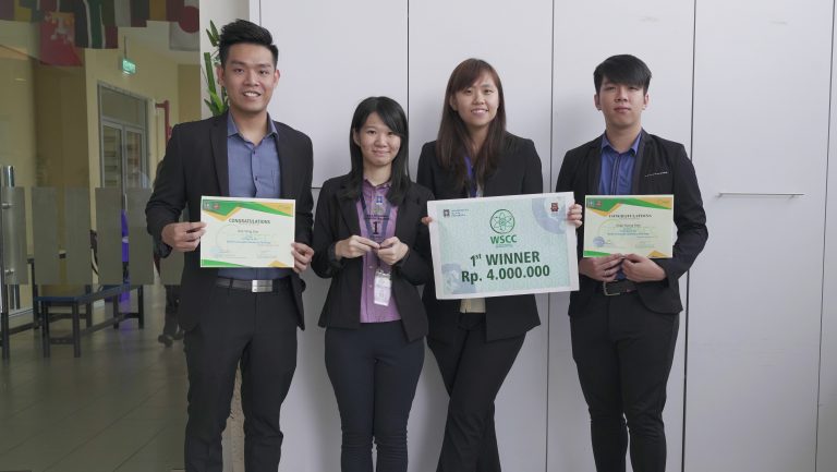Three undergraduate students from QIU’s Bachelor of Science (Hons) in Biotechnology programme, Koh Wing Sun, Chan Kwong Kian and Cho Kar Ean were declared champions and walked away with the prize of Rp4,000,000 and a trophy for their submission titled “Characterisation of plant growth-promoting rhizobacteria associated with Leucaena leucocephala, a potential biomass energy resource in Malaysia”.