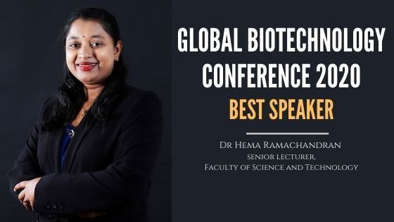 Our own Senior Lecturer from the School of Biological Sciences Dr Hema Ramachandran did just that when she was invited to speak at the Global Biotechnology Conference earlier this month.