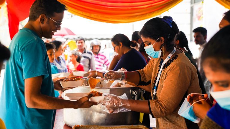 Instead of handing out styrofoam food packets, our volunteers distributed food in bio-degradable versions made from sugarcane.