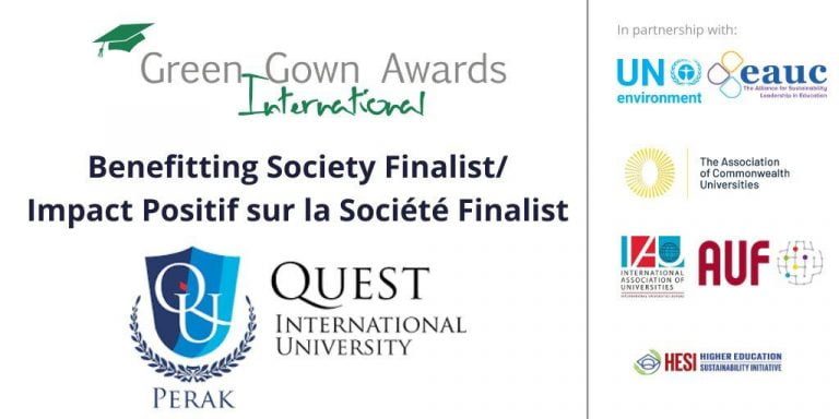 Quest International University Perak (QIU) has been named as one of 13 finalists in the prestigious International Green Gown Awards 2020, thanks to the stellar work of our QIU Eco-Rangers.