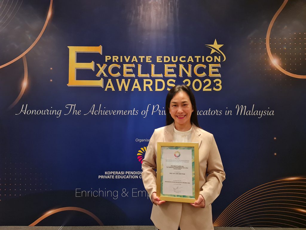 Professor Dr Loke Siew-Phaik, Head of the Faculty of Business and Management‘s School of Postgraduate Studies has received the Merit Award in National Outstanding Educator-University Category at the Private Education Excellence Awards 2023.